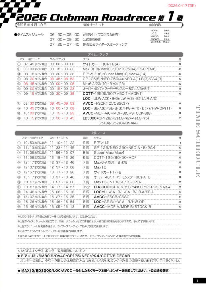 先日記載した通り、予選の走行枠がいつもと違いますのでお気を付けください。